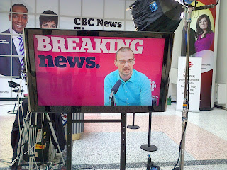 Voor mijn verjaardag, vorig weekend, had Myriam een verrassingsbezoek gepland aan CBC, de nationale omroep. Het was er open deur dag en we hebben een bezoek daar gecombineerd met een mooie wandeling door dowtown Toronto. Topdag, daar had de zon en 26 graden op de thermometer zeker ook wel wat mee te maken ...